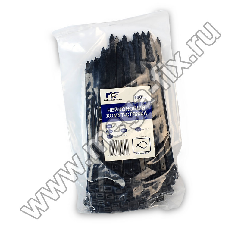 Хомут нейлоновый MGF 3,6х150 мм черного цвета (100 шт./ уп.)